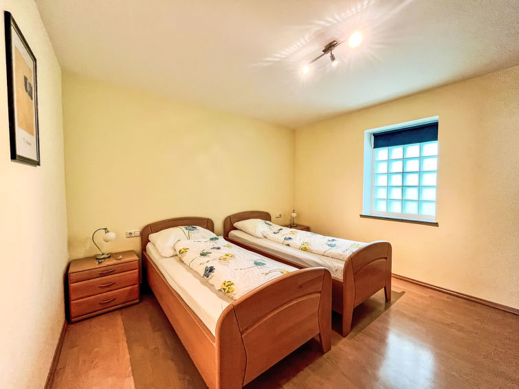 Appartementencomplex "Zum Trichter". In het centrum van Palzem, aan een weg. Voor medegebruik: tuin, ligweide. Terras, tuinmeubelen. In het huis: centrale verwarming. Openbare parkeerplaatsen in de straat. Winkel 5 km, supermarkt 5 km, restaurant 50 m, bushalte "Palzem" 200 m, treinstation "Palzem" 200 m, openluchtzwembad 5 km, overdekt zwembad 13 km. Tennis 5 km. Auto noodzakelijk.