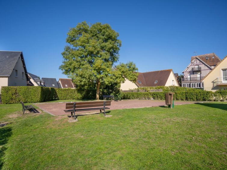 Complex met huizen in een rij en appartementenhuizen in normadische stijl: residentie "Fleur Marine". In de plaats, 1 km van het centrum van Cabourg, 300 m van zee, 300 m van het strand, directe toegang tot het strand. Voor medegebruik: jeu de boules, parkeerplaats (beperkt aantal). Winkel 1 km, levensmiddelenwinkel 1 km, supermarkt 900 m, restaurant 1 km, bar 1 km, fietsverhuur 550 m, bushalte "Plage" 450 m, zandstrand 300 m, thermaalbad "Thalazur" 500 m. Jachthaven 3 km, golfterrein (9 holes) 1.2 km, tennis 700 m, midgetgolf 2.3 km, sportcentrum 500 m. Attracties in de buurt: Deauville 26 km, Honfleur 48 km, Caen 25 km. Geen lift. De afgebeelde foto is slechts een voorbeeld.