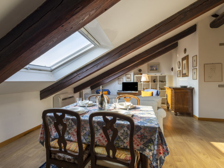 "13", appartement 2-kamers 60 m2 op de 3e verdieping. Afgeschuinde daken, comfortabel ingericht: woon-/eetkamer met 1 2-pers divanbed, eettafel, TV en air-conditioning. 1 2-pers. kamer met afgeschuinde daken. Kleine keuken (afwasmachine, 4 inductiekookplaten, waterkoker, magnetron, elektrische koffiemachine). Douche/bidet/WC. Gas-verwarming. Verwarming alleen beschikbaar van 15.10. tot 15.04. Houten vloeren. Mooi uitzicht op het meer. Ter beschikking: haardroger. Internet (WiFi, gratis). Parkeerplaats nr. 13 (1 Auto). Rookmelders, brandblusser, geen lift. IT103033C2XMJI7FFX