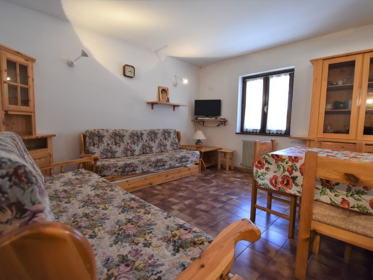 Appartement 4-kamers 90 m2 op 2 verdiepingen, op de begane grond. Doelmatig en comfortabel ingericht: groot woon-/eetkamer met eettafel en TV (Flatscreen TV). Kookhoek (4-pits kookplaat, afwasmachine, magnetron). Bad/bidet/WC. Boiler. Souterrain: 1 2-pers. kamer. 1 2-pers. kamer met 1 x 2 stapelbedden. 1 kamer met 1 x 2 stapelbedden. Douche/bidet/WC, aparte WC. Boiler. Uitzicht op de bergen en het dal. Ter beschikking: wasmachine, haardroger. Internet (WiFi, gratis). Garage. Geschikt voor families. Niet rokers woning. Maximaal 1 huisdier/hond toegestaan. Brandblusser. IT022039C26KN2RBQ3