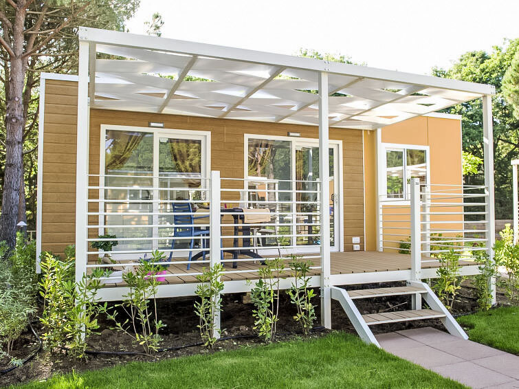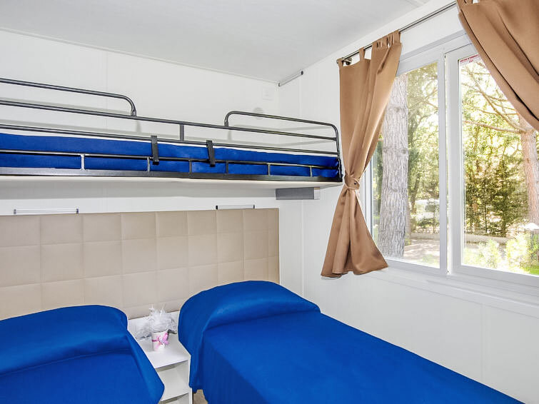 "Bungalow Trendy", 3-kamers mobilhome 30 m2, op de begane grond. Het objekt is geschikt voor 4 volwassenen + 1 kinderen. Doelmatig en modern ingericht: woon-/eetkamer met kookhoek en TV. Uitgang naar de veranda. 1 2-pers. kamer met aparte WC. 1 kleine kamer met 3 bedden. Douche/WC. Air-conditioning. Terras 14 m2, tuin. Terrasmeubelen. Ter beschikking: kluis, haardroger. Internet (Internet (WiFi), gratis). Oplaadstation. Privé ingang. IT053006B1ZWQW8ZUA