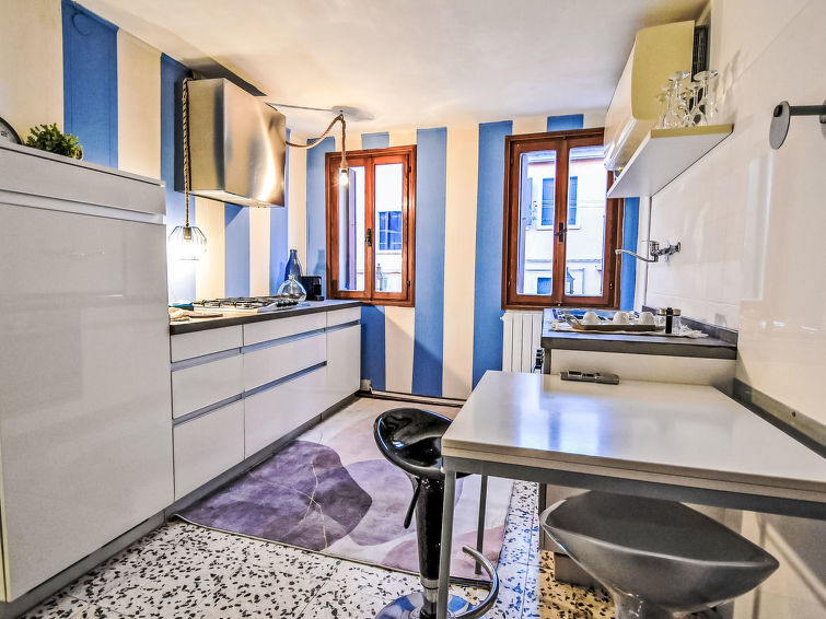 Huis 3-kamers 55 m2 op 4 verdiepingen. Comfortabel en smaakvol ingericht: hal. Douche/bidet/WC. Boiler. Bovenverdieping: (steile trap). Keuken (oven, 4 kookpitten (vlammen), broodrooster, waterkoker, magnetron, diepvriezer, elektrische koffiemachine, pads voor de koffiemachine (Nespresso)) met eettafel, air-conditioning. 2e Verdieping: (steile trap) woon-/slaapkamer met 1 2-pers divanbed en TV. 3e Verdieping: 1 2-pers. kamer, zonder kast met air-conditioning. Verwarming. Zijdelings uitzicht op het kanaal. Ter beschikking: wasmachine, kinderstoel, kinderbed, haardroger. Internet (Internet (WiFi), gratis). Rookvrij huis. Privé ingang, geen lift. IT027008C2JBGU5ESV