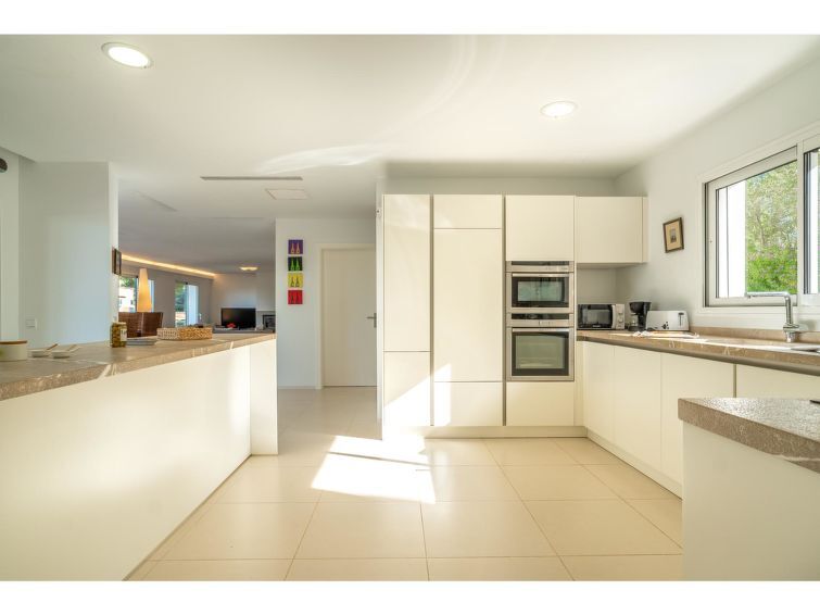 "Orquidea 34", appartement 6-kamers 435 m2 op 2 verdiepingen, op het noordwesten gelegen. Het objekt is geschikt voor 8 volwassenen. Ruim en licht, zeer modern en luxueus ingericht: groot woon-/eetkamer met eettafel, Digitale TV, internationale TV-zenders, air-conditioning en heteluchtverwarming. Uitgang naar de zitplaats in de tuin, naar het zwembad. 1 groot 2-pers. kamer met panoramavenster met 1 2-pers bed (2 x 90 cm, lengte 200 cm), bad/WC, air-conditioning en heteluchtverwarming. Uitgang naar het terras, naar het zwembad. 1 2-pers. kamer met panoramavenster met 1 2-pers bed (2 x 90 cm, lengte 200 cm), douche/WC, gasverwarming, air-conditioning en heteluchtverwarming. 1 2-pers. kamer met panoramavenster met 1 2-pers bed (2 x 90 cm, lengte 200 cm), bad/douche/WC, Digitale TV, internationale TV-zenders, gasverwarming, air-conditioning en heteluchtverwarming. Keuken (oven, afwasmachine, 1 keramische glas kookplaat, 4 kookpitten (vlammen), broodrooster, waterkoker, magnetron, diepvriezer, elektrische koffiemachine, kookeiland) met Digitale TV, internationale TV-zenders, air-conditioning en heteluchtverwarming. Uitgang naar het terras. Badkamer. Air-conditioning, heteluchtverwarming. Bovenverdieping: 1 groot 2-pers. kamer met schuifdeur met 1 2-pers bed (180 cm, lengte 200 cm), douche/WC, air-conditioning en heteluchtverwarming. Uitgang naar het terras. Ruime zithoek in de tuin. Terrasmeubelen, barbecue, ligstoelen (8), loggia, zitgelegenheid. Mooi uitzicht op zee, de bergen en het bos. Ter beschikking: wasmachine, droger, sauna, strijkijzer, haardroger. Internet (Internet (WiFi), gratis). Parkeerplaats. Niet geschikt voor kleine kinderen. Brandblusser. Het zwembad genoemd in de beschrijving is voor privé gebruik. ETV/15893