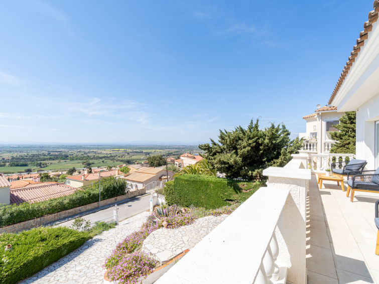 Groot, moderne, gezellige villa "Panorama", van 2 verdiepingen. In de plaats Palau Savardera, 8 km van het centrum van Roses, rustige, zonnige ligging villa wijk, gebied met weinig verkeer, 7 km van zee, 7 km van het strand, op het zuiden. Voor alleengebruik: groot tuin op verschillende niveaus (omheind) met planten en bomen, openluchtzwembad hoekig (8 x 4 m, 100 - 200 cm diepte, seizoensgebonden beschikbaarheid: 01.Mei. - 30.Okt.) met trap. Terras, tuinmeubelen, barbecue, parkeerplaats (voor 3 auto's) op het terrein. Levensmiddelenwinkel 3 km, supermarkt 3 km, restaurant, bar, café 500 m, bushalte "Moventis estació bus Roses" 8.8 km, treinstation "Estación Tren Vilajuiga" 6 km, zandstrand "Roses" 9 km. Jachthaven 9 km, golfterrein (18 holes) 12 km, zeilschool 9 km, tennis 3 km, manege 5 km. Attracties in de buurt: Zona de padel con bar y restaurante 500 m, Parque Acuático Roses Aquabrava 3 km, Túnel del viento y Skydive Empuriabrava 12 km, Cadaqués 17 km, Museo Dalí Figueres 22 km, Castillo y festival de Perelada 15 km. Auto noodzakelijk. Groepen jongeren uitsluitend op aanvraag. De sleuteloverdracht vindt plaats bij het agentschap Interhome in Empuriabrava.