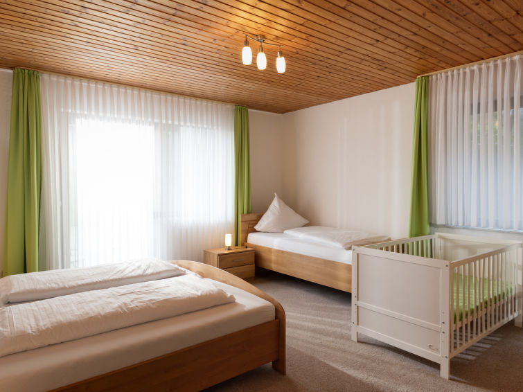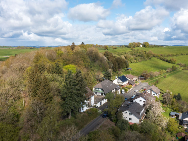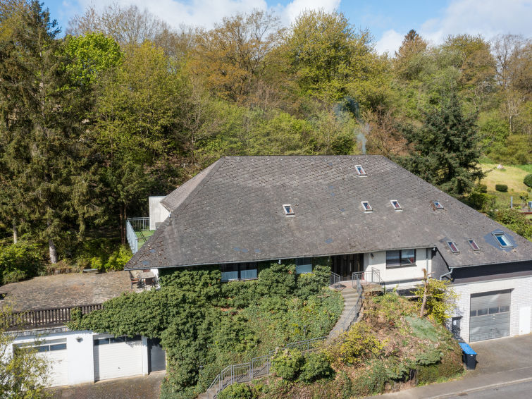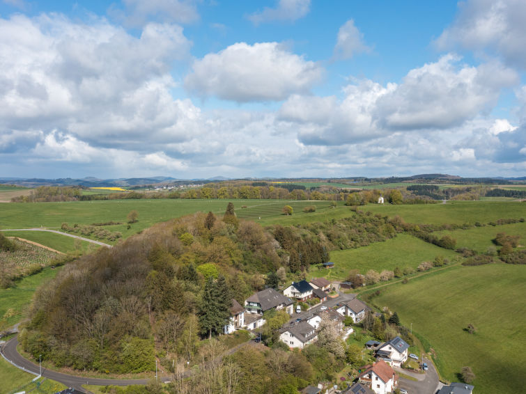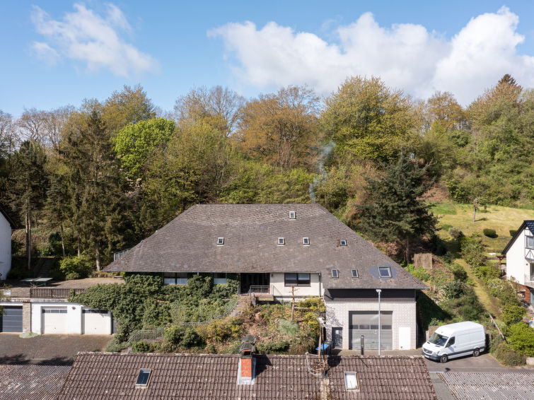 Huis met 3 woningen "Eifelnatur (Haus 2)", omgeven door bomen en velden. Aan de rand van de plaats, 300 m van het centrum, rustige, verhoogde ligging tegen een helling, 10 m van de bosrand, 8 km van het meer, aan een doodlopende weg, te midden van groen. Voor medegebruik: terrein 1.350 m2, verzorgde tuin 450 m2 met gazon 300 m2, bloemen. Tafeltennis, kinderspeelplaats (glijbaan, schommel, zandbak). In het huis: sauna (extra). Biljart, tafelvoetbal, bergruimte voor fietsen, centrale verwarming, wasmachine (voor medegebruik). Wissel van linnengoed 1 maal per week. Wissel van handdoeken 1 maal per week. Broodjesservice en drankjesservice op verzoek op aanvraag (extra). Trappenweg (25 treden) naar het huis. Levensmiddelenwinkel 5.3 km, supermarkt 5.3 km, winkelcentrum 5 km, restaurant 150 m, bar 5.3 km, bakkerij 5.3 km, café 5.3 km, fietsverhuur 10 km, bushalte "Lutzerath" 7 km, treinstation "Gerolstein" 23 km, openluchtzwembad 7.6 km, thermaalbad "Vulkaneifel-Therme Bad Bertrich" 13 km, meer (zwemmen) 7.6 km. Golfterrein (18 holes) 40 km, tennis 3.5 km, midgetgolf 7.8 km, manege 10 km, wandelroutes 50 m vanaf het huis. Attracties in de buurt: Vulkanmaare, Vulkanmuseum, Kreuzweg, Strohner Märchen, Wildpark Daun, Adler- und Wolfspark Kasselburg. Bekende meren kunnen gemakkelijk worden bereikt: Pulvermaar 1.5 km. Wandelgebied Eifelsteig 15 km. Auto noodzakelijk. De eigenaar accepteert geen jeugdgroepen. Laden en lossen van de baggage is mogelijk bij het huis. De omgeving is gevoelig voor geluidsoverlast. Gelieve geen lawaai te maken en de rust te bewaren.