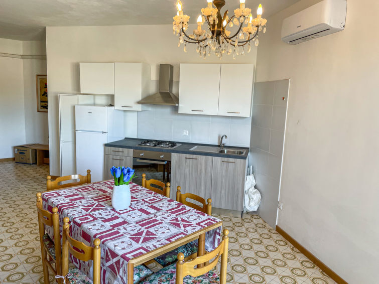 Appartement 2-kamers 60 m2 op de 2e verdieping. Licht, eenvoudig en doelmatig ingericht: woon-/eetkamer met 1 2-pers divanbed, 1 opklapbed en TV. Uitgang naar het terras. 1 2-pers. kamer. Kookhoek (oven, 4 kookpitten (vlammen), magnetron) met eettafel. Douche/bidet/WC. Air-conditioning. Geen verwarmingsmogelijkheid. Terras. Ter beschikking: kinderbed. Geschikt voor families. Niet rokers woning. Maximaal 1 huisdier/hond toegestaan. IT027034B4QD3TCATB