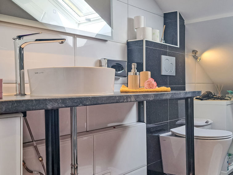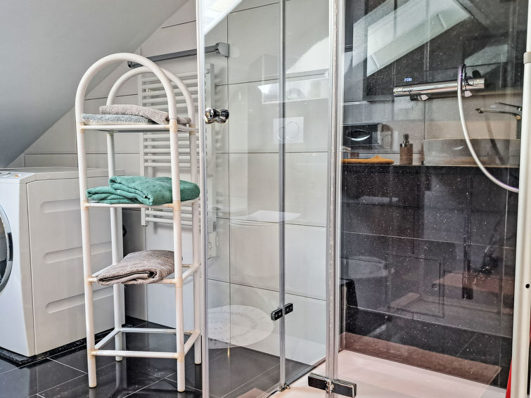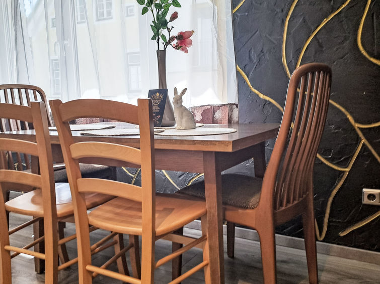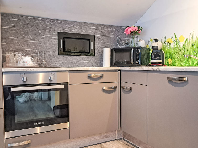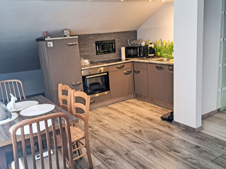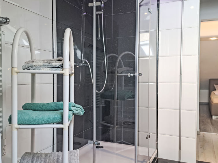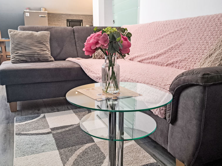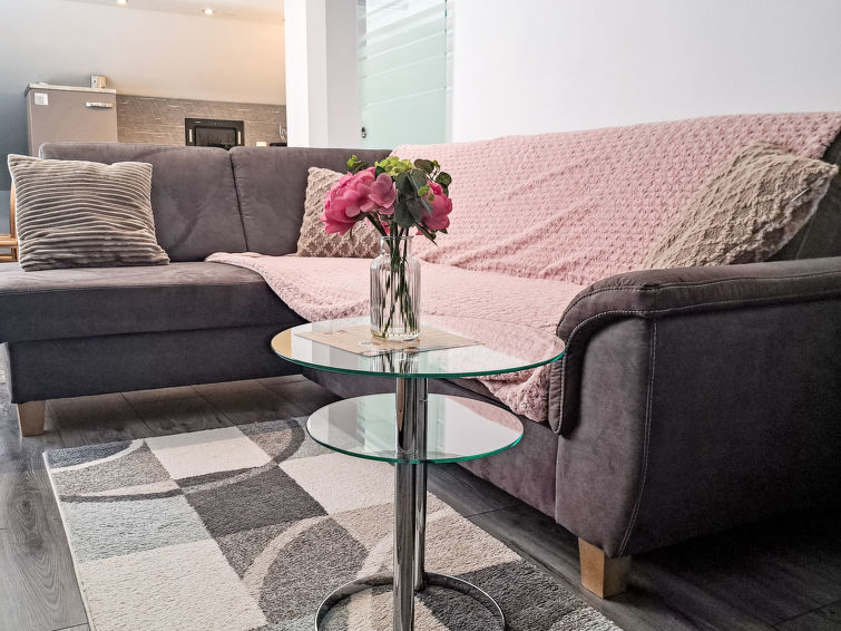 "Siebter Himmel", appartement 2-kamers 55 m2. Het objekt is geschikt voor 2 volwassenen + 2 kinderen. Modern en smaakvol ingericht: hal. Woon-/eetkamer met eettafel, eethoek en Sat-TV. 1 2-pers. kamer. Open keuken (oven, afwasmachine, 4 inductiekookplaten, magnetron, elektrische koffiemachine). Douche/WC. Ter beschikking: wasmachine. Internet (WiFi). 1 huisdier/hond toegestaan. 53104/9757