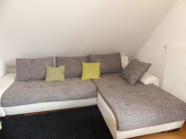 "Appartement Anneliese", appartement 2-kamers 57 m2 op de 2e verdieping. Licht, gedeeltelijk afgeschuinde daken, eenvoudig en modern ingericht: hal. Woon-/slaapkamer met 1 2-pers divanbed, Kabel-TV, internationale TV-zenders en Flatscreen TV. Uitgang naar het terras. 1 open 2-pers. kamer. Open keuken (oven, 4 keramische glas kookplaten, broodrooster, waterkoker, magnetron, elektrische koffiemachine, pads voor de koffiemachine (Tassimo)) met eettafel. Douche/WC. Parketvloeren, natuurstenen vloeren. Terras 10 m2. Terrasmeubelen. Zijdelings panoramazicht op de bergen. Ter beschikking: Internet (Internet (WiFi), gratis). Geschikt voor families. Niet rokers woning. 50619-006040-2021